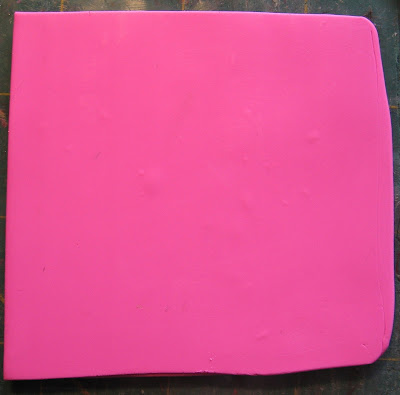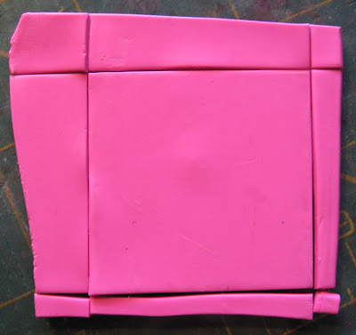Etalez un peu d'argile plus rose à la plus épaisse de réglage et découper un carré de 2 pouces.