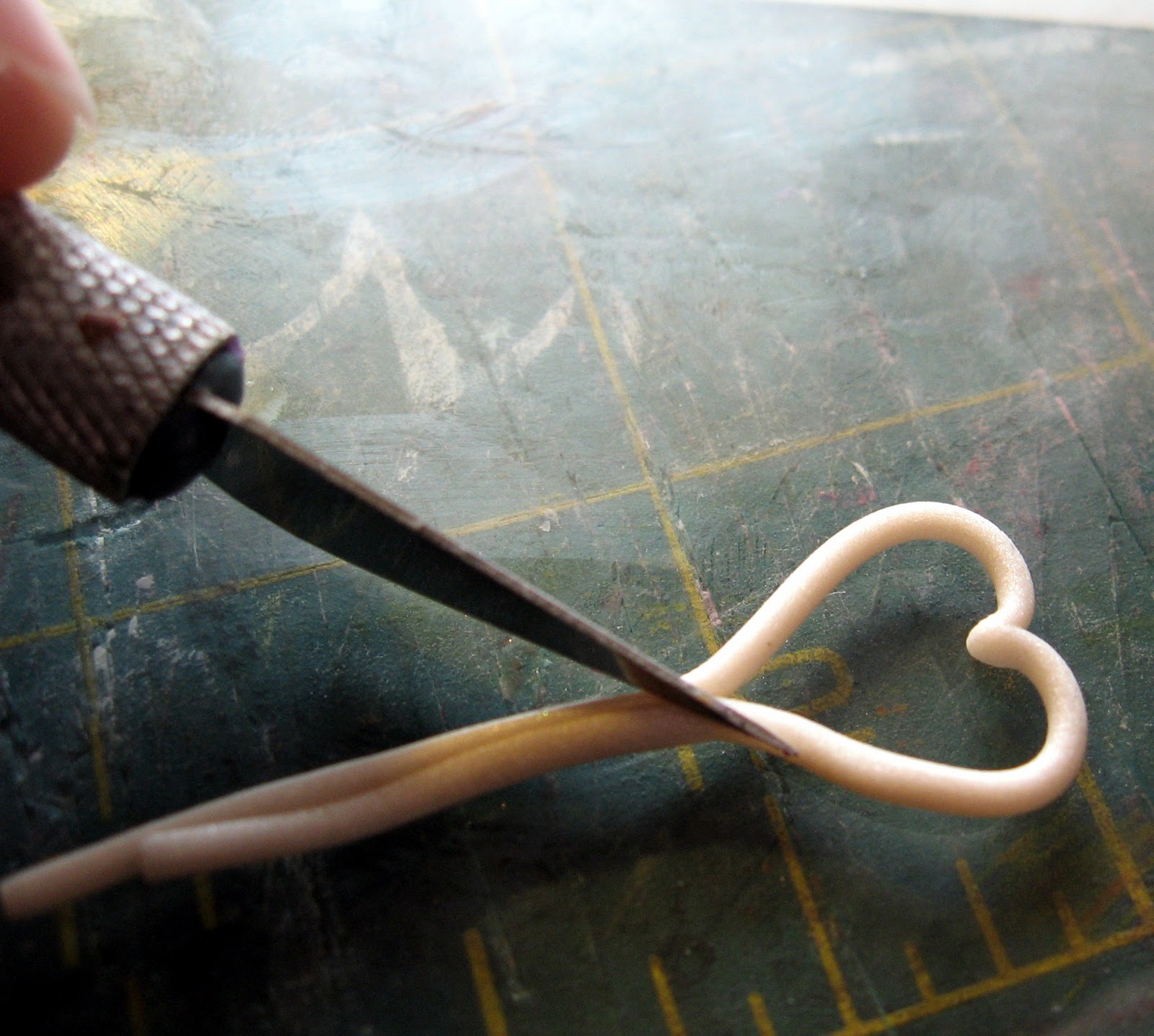 Couper les queues et remodeler le cœur comme vous le souhaitez. Je pense que la prochaine fois que je fais celui-ci, je vais courbe de la pointe vers le bas un peu pour qu'il corresponde aux coeurs d'or meilleures: