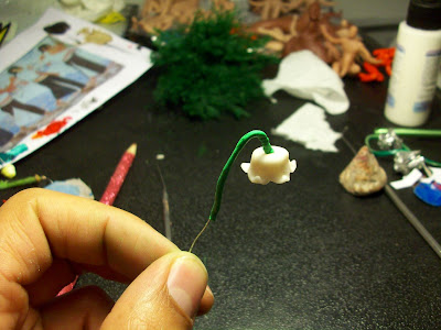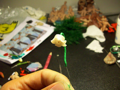 J'utilise une aiguille pour faire tenir la tige des fleurs et de mettre une bobine de pâte à papier sur elle. Ta fleur est fait et est donc votre tige. Arrêtez-vous ici ou continuer à faire une tige entière de fleurs.